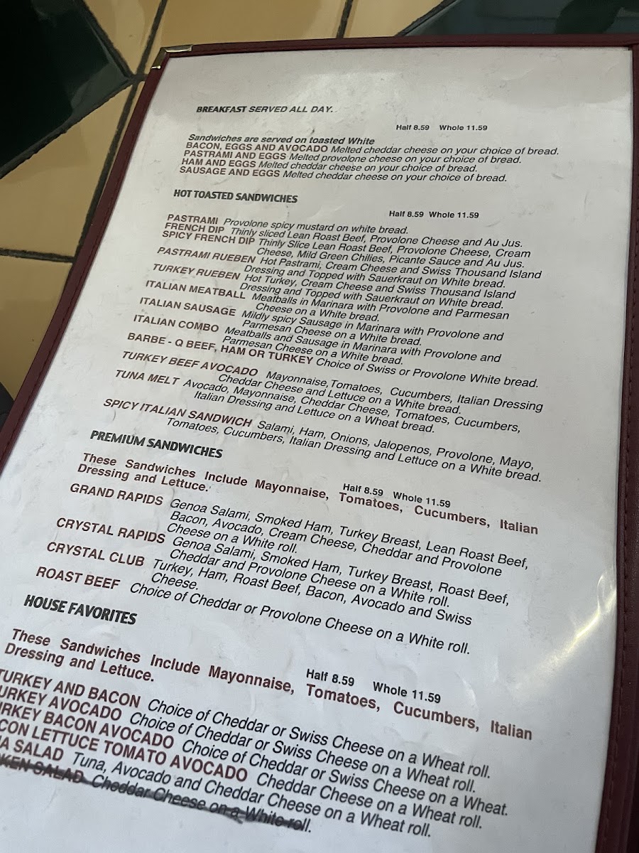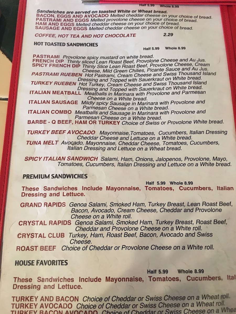 Crystal Creek Sandwich Co Menu